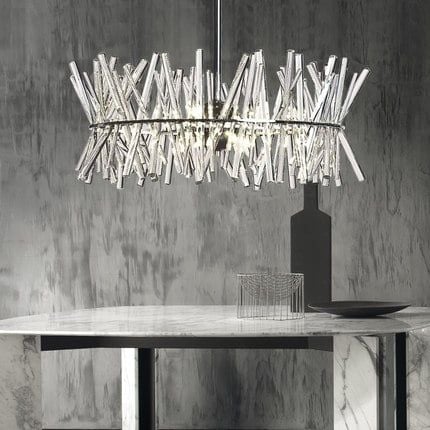 Chất liệu | Khung thép, pha lê |