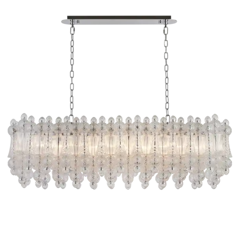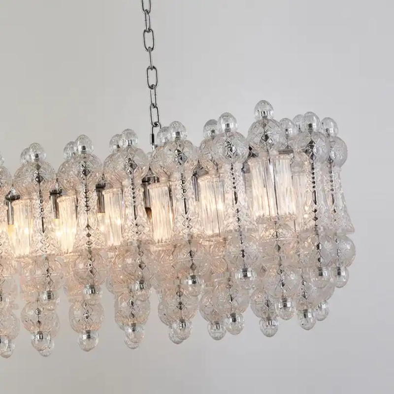 Đèn trang trí Elegant được thiết kế tinh xảo, lấy cảm hứng từ những thanh quyền trượng hoàng gia – biểu tượng của quyền lực và sự thịnh vượng. Các chi tiết thủy tinh được sắp xếp công phu, giống như những viên ngọc quý trên đỉnh quyền trượng, tạo nên vẻ đẹp lung linh, thanh lịch nhưng không kém phần uy nghi.