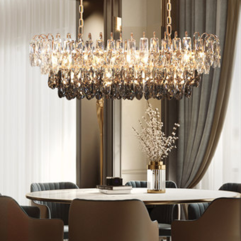 Chất liệu | Pha lê Cyan, pha lê xám khói, khung sắt |
