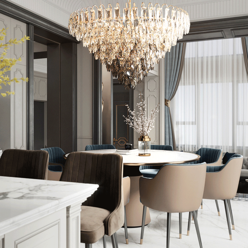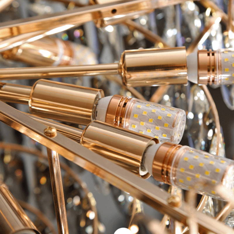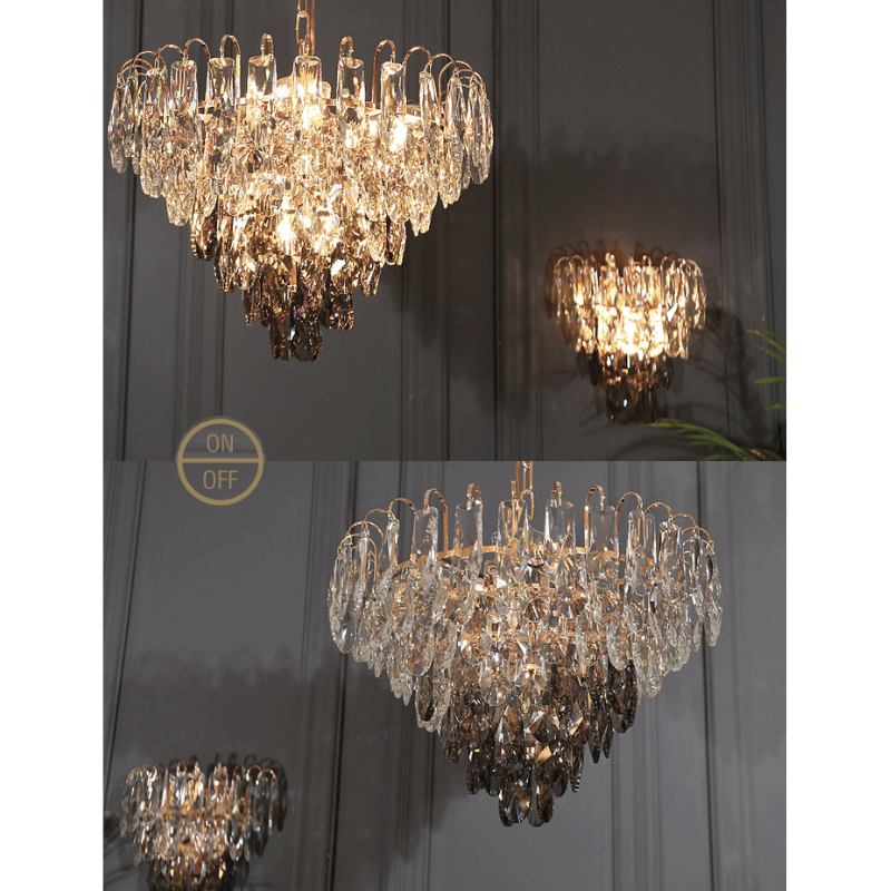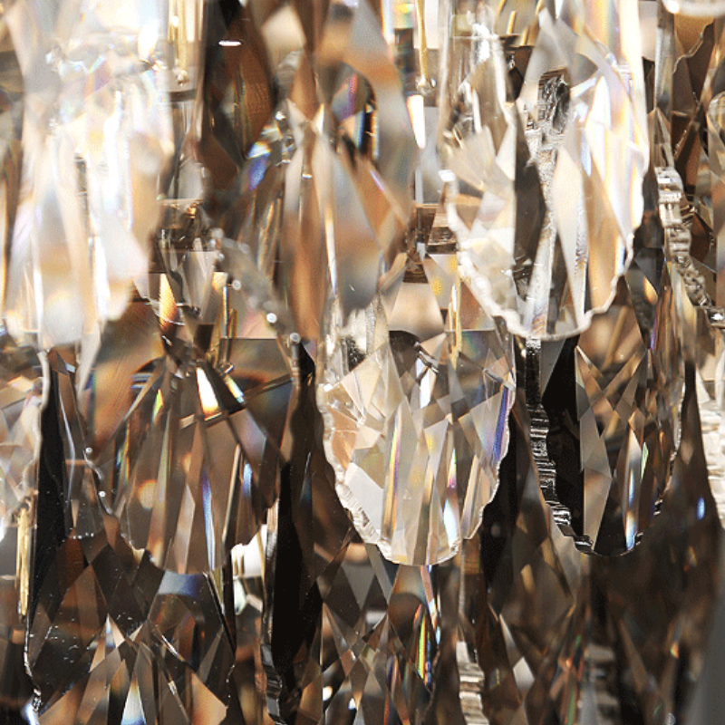 Chất liệu | Pha lê Cyan, pha lê xám khói, khung sắt |