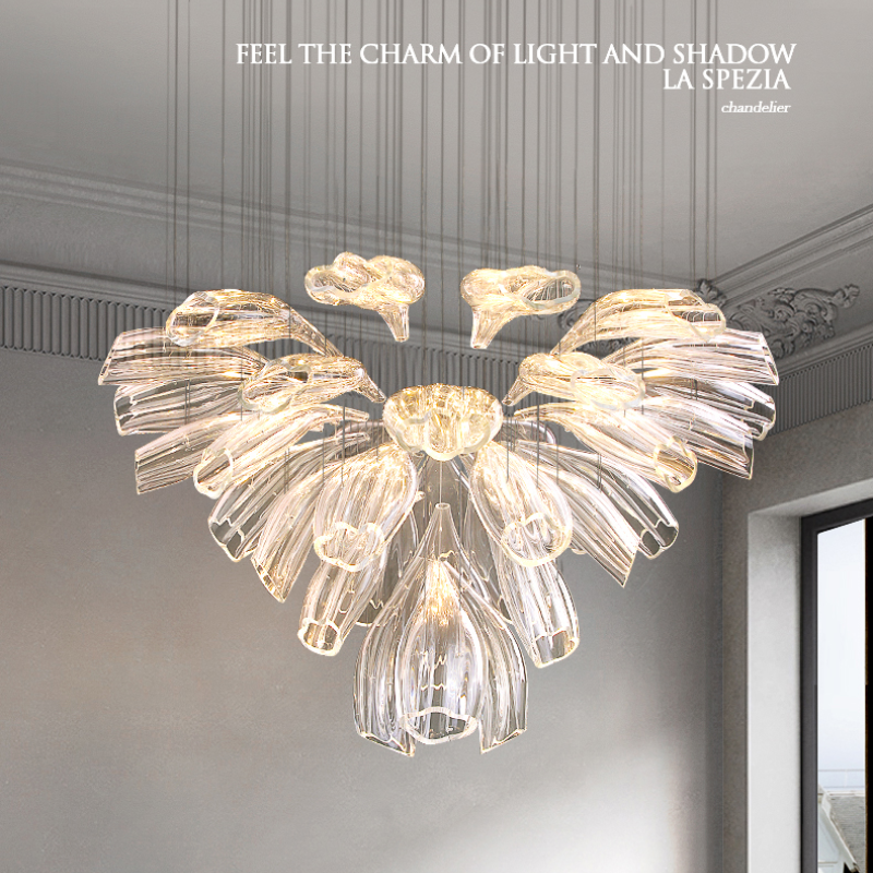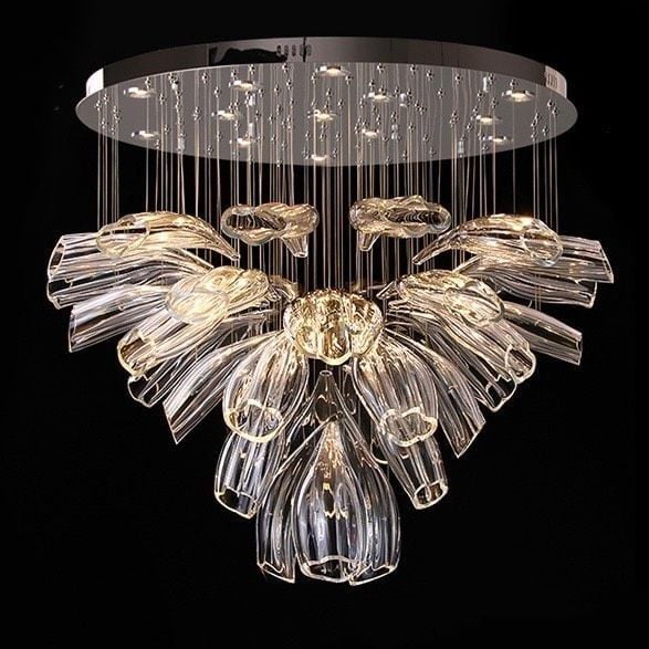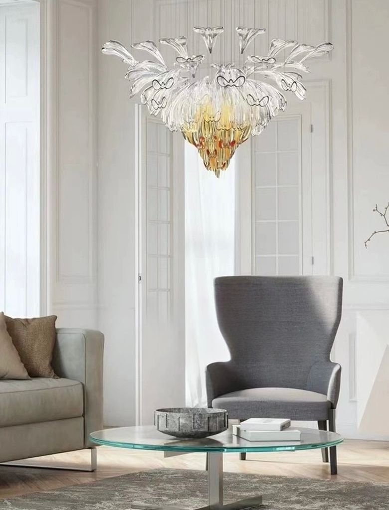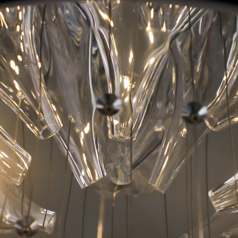 Chất liệu | Khung thép không gỉ, đèn thủy tinh thủ công |